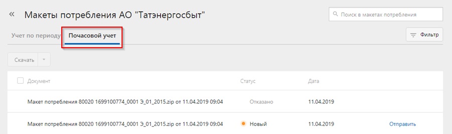 Нажмите на нее для редактирования и отправки макета почасовых показаний. Прим.: При авторизации в системе по логину и паролю