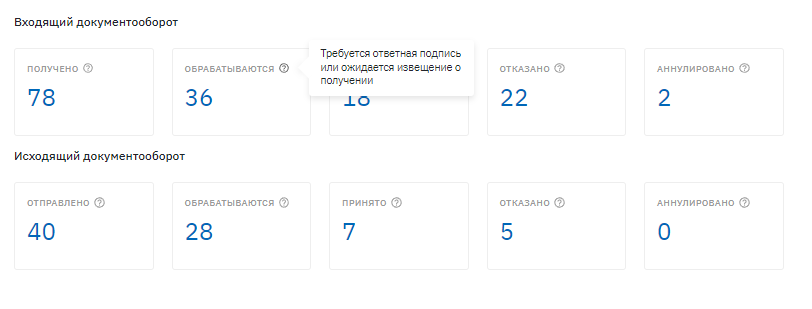 В отдельных виджетах будет отображена статистика по документам у которых срок обработки еще не истек и уже с истекшим сроком обработки, например: